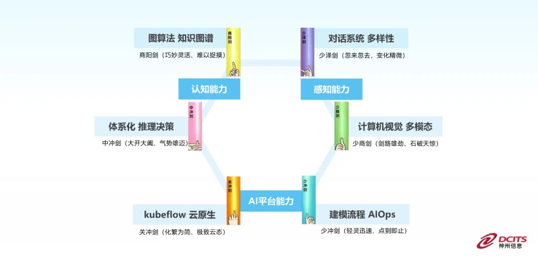 金融超脑具有“对话系统 多样性”、“计算机视觉 多模态”、“图算法 知识图谱”、“体系化 决策推理”、“机器学习工具kubeflow 云原生”、“建模流程 一体化运维AIOps”六大技术特性。
